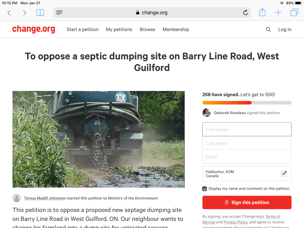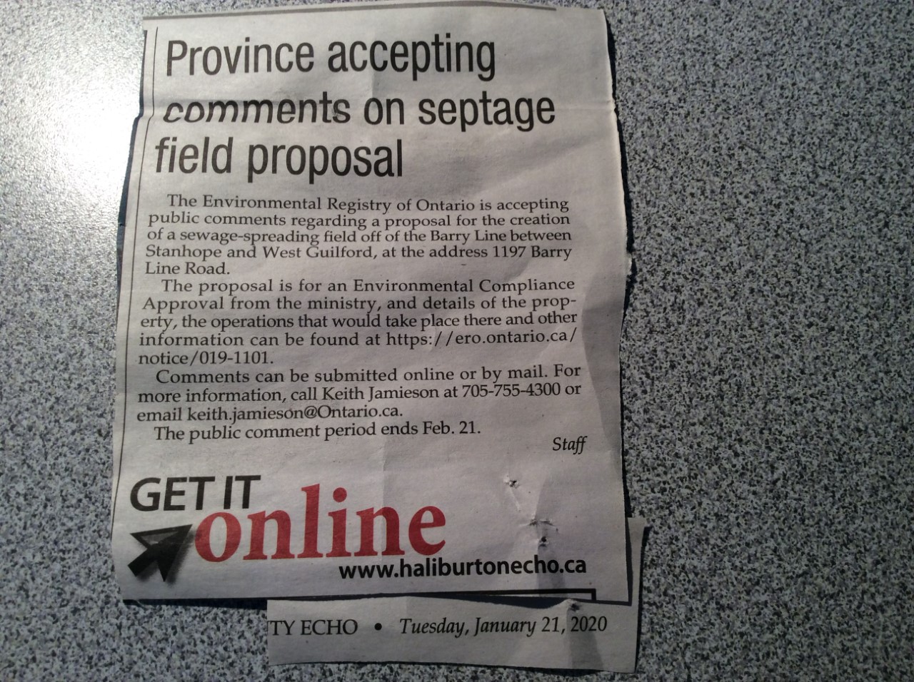 Most residents and followers of Facebook had reacted and opposed this proposal based on a lack of knowledge, understanding, and misinformation. Residents were led to believe that fields that are all along The Barry Line road, were to become "fields of human waste". They ASSUMED they would be driving right beside sewage laying on the ground. They were told this sewage was going to be spread all beside fields and backyards "where our children, our neighbours children and many friends play all the time." Without thinking, or checking to see if this was accurate information, the rumour mill took off. Facebook took over and social media ran with this. This misinformation was shared, uninformed comments made, petition signed, and ero comments registered. - All Based On False Information!