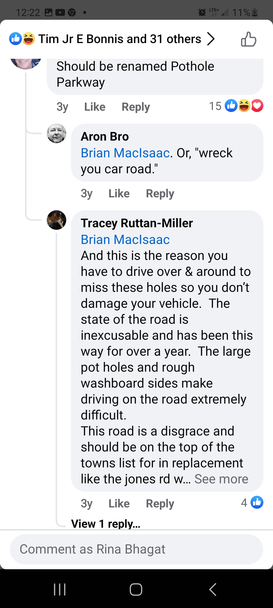 Please see below some screen shots over the years that will show why heavy truck volume is not suited for Winhara Road. It is a very tight road, has been the site of a fatal accident because of the bad intersection turning onto Winhara, there is wildlife on the road, and as you can see it's a constant road needing improvement in terms of potholes and road damage. Adding 100+ trucks 6 days a week is not only a hazard to the road but it is a huge concern with safety.