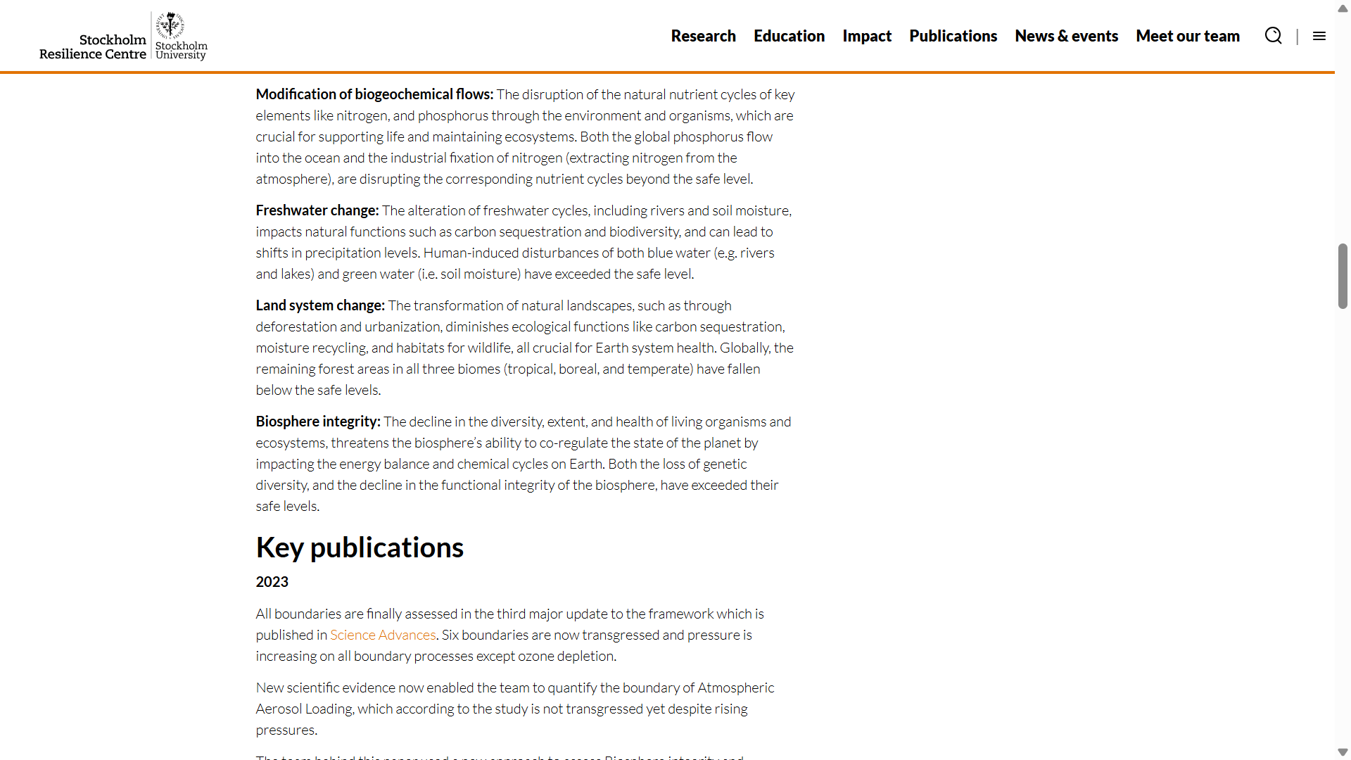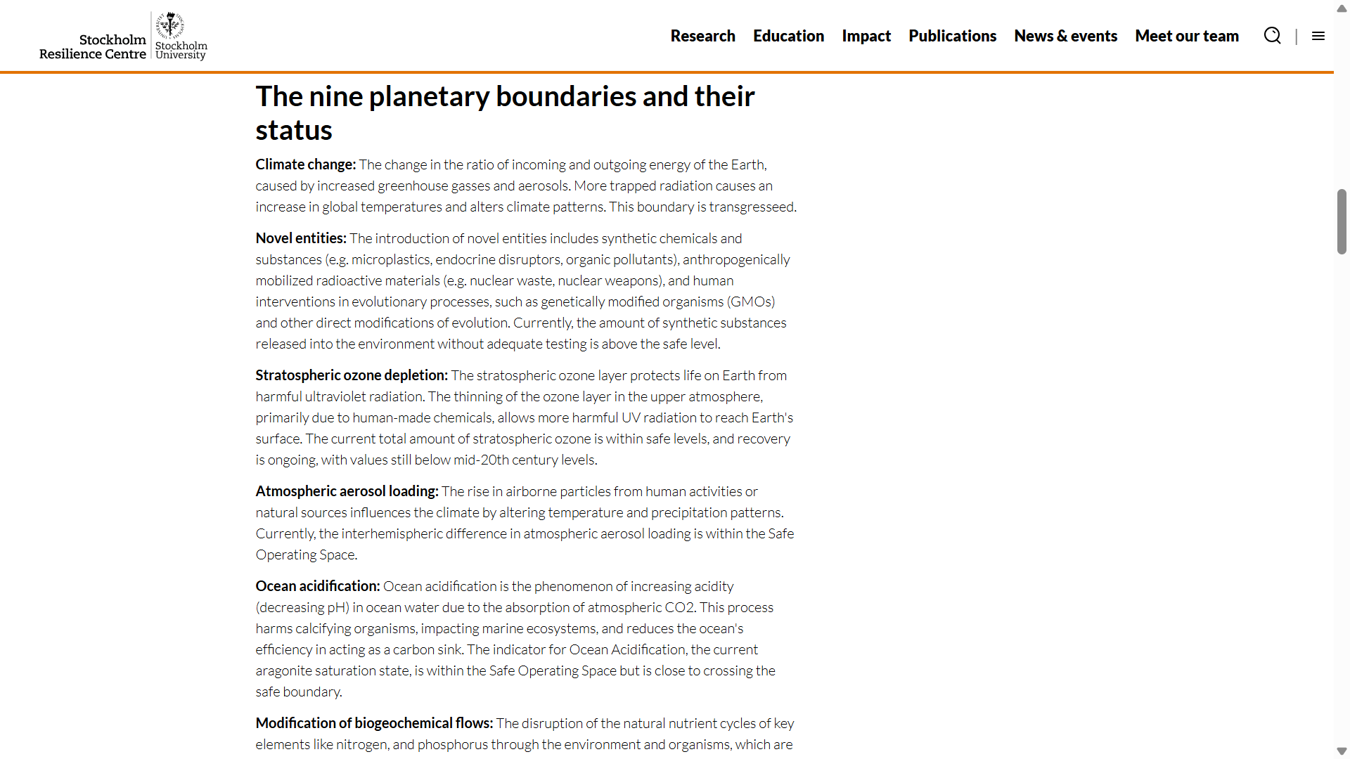 The Stockholm Resilience Centre tells us that 6 of the 9 planetary boundaries have been transgressed and that these boundaries are:
