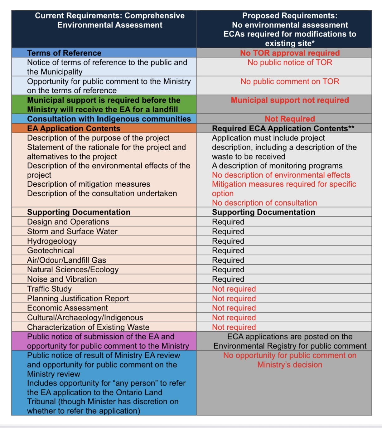 We urge the Ontario government to honour its commitments to communities and the environment. Do not pass Bill 5. Preserve the full Environmental Assessment process for landfill developments.