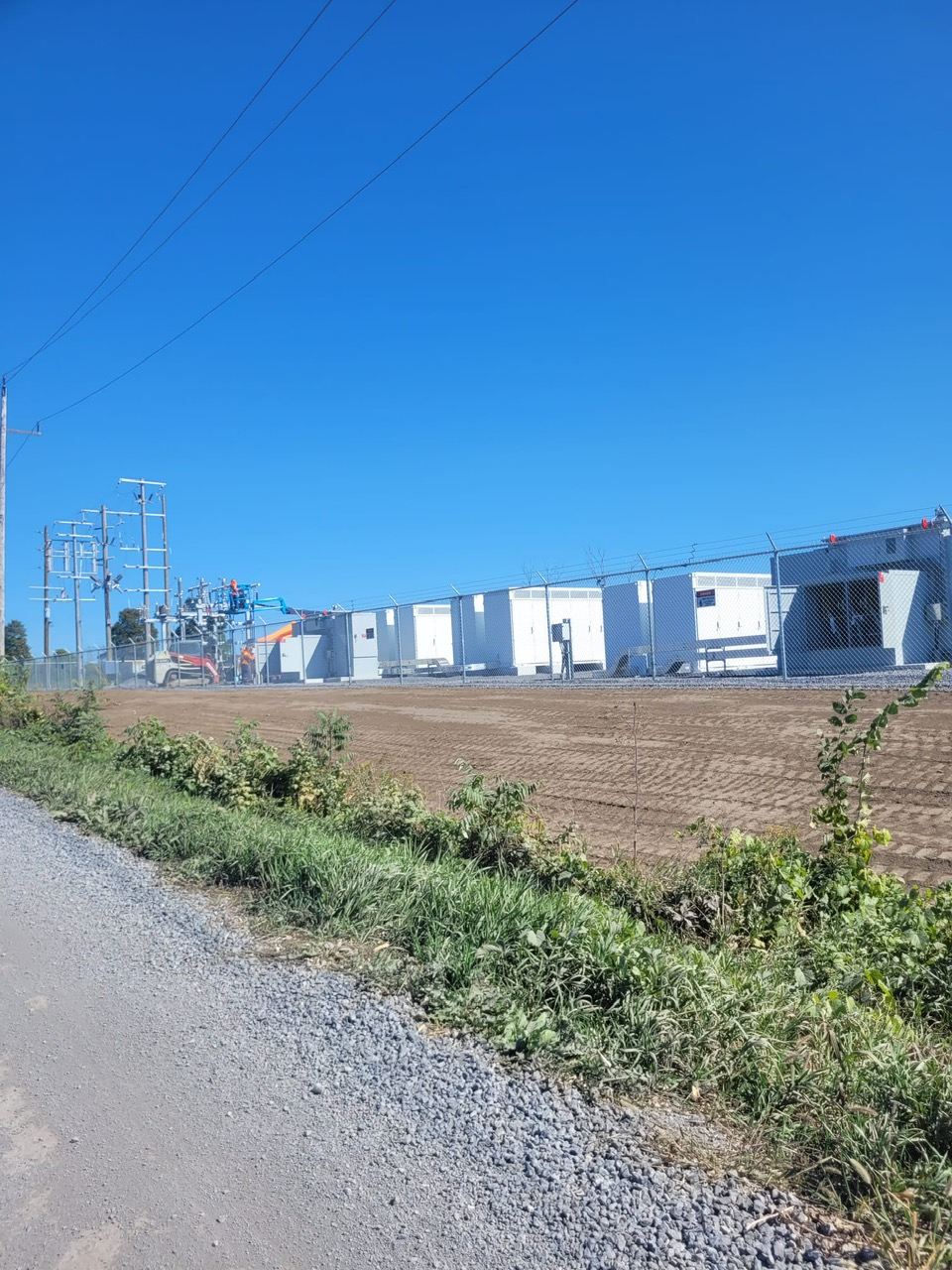 Three (3) transformers are already on site, as of Monday, September 15th, 2025. There does not appear to be any temporary stormwater management system in place. It appears that there are no sediment fences nor straw bale float checks installed around the perimeter of the site to contain any runoff so that there is no contamination in the downstream receiver. The actual fence seen appears to be just a normal fence.