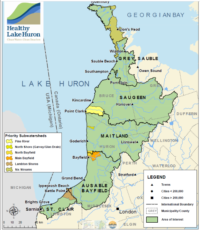 Additional information is provided on the Healthy Lake Huron Program. The Healthy Lake Huron Program - Clean Water, Clean Beaches, is a concerted effort to address nuisance algae concerns and to promote safe and clean beaches and shorelines from Sarnia to Tobermory. The program is an existing collaborative effort involving, the Canada Water Agency, the Ontario Ministry of Environment Conservation and Parks, the Ontario Ministry of Agriculture, five Conservation Authorities, local Counties, Municipalities and Towns, the local Health Units, local landowners and conservation groups. The Township seeks consideration for this map area as a potential alternative in a new Lake Huron Regional Conservation Authority, within proposed amalgamation plans.