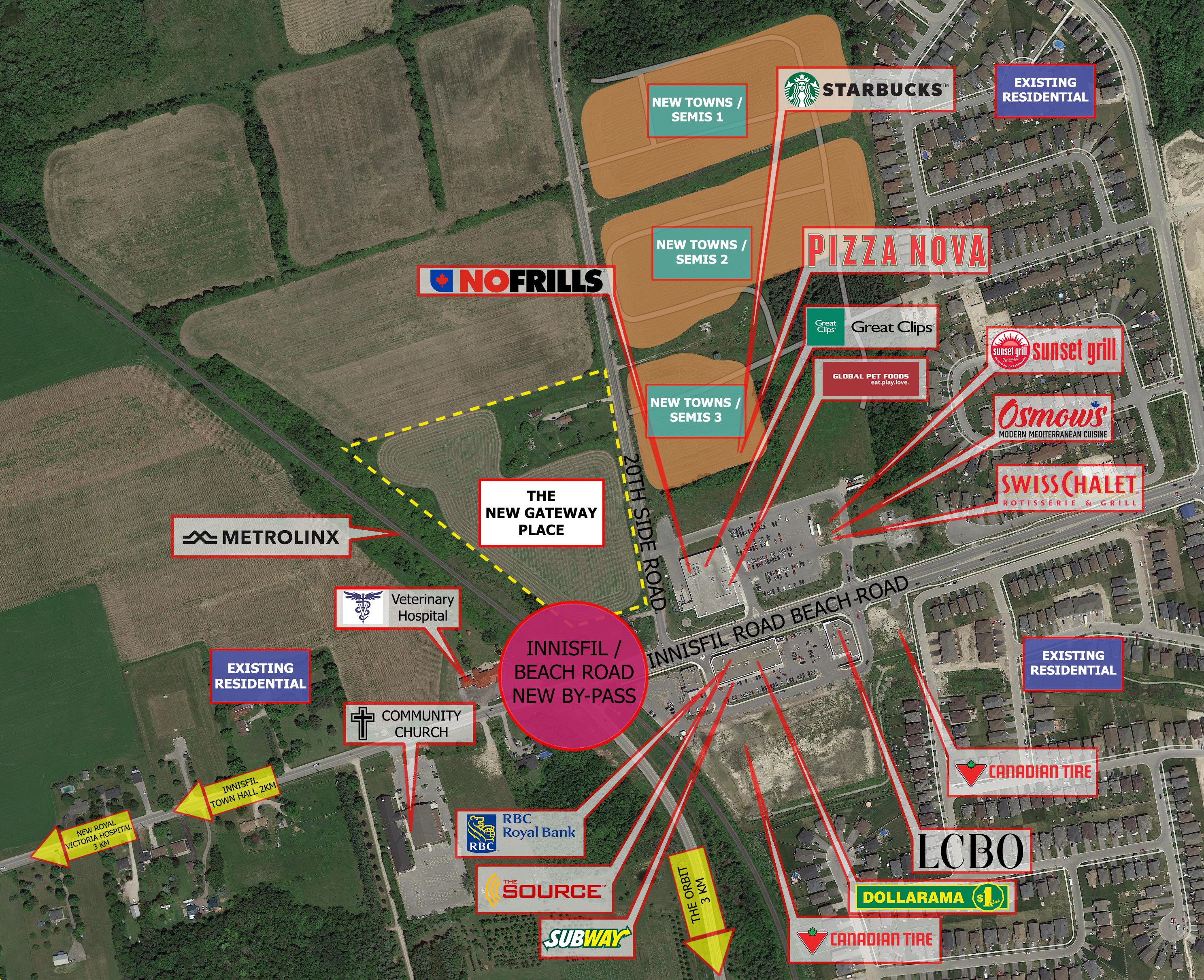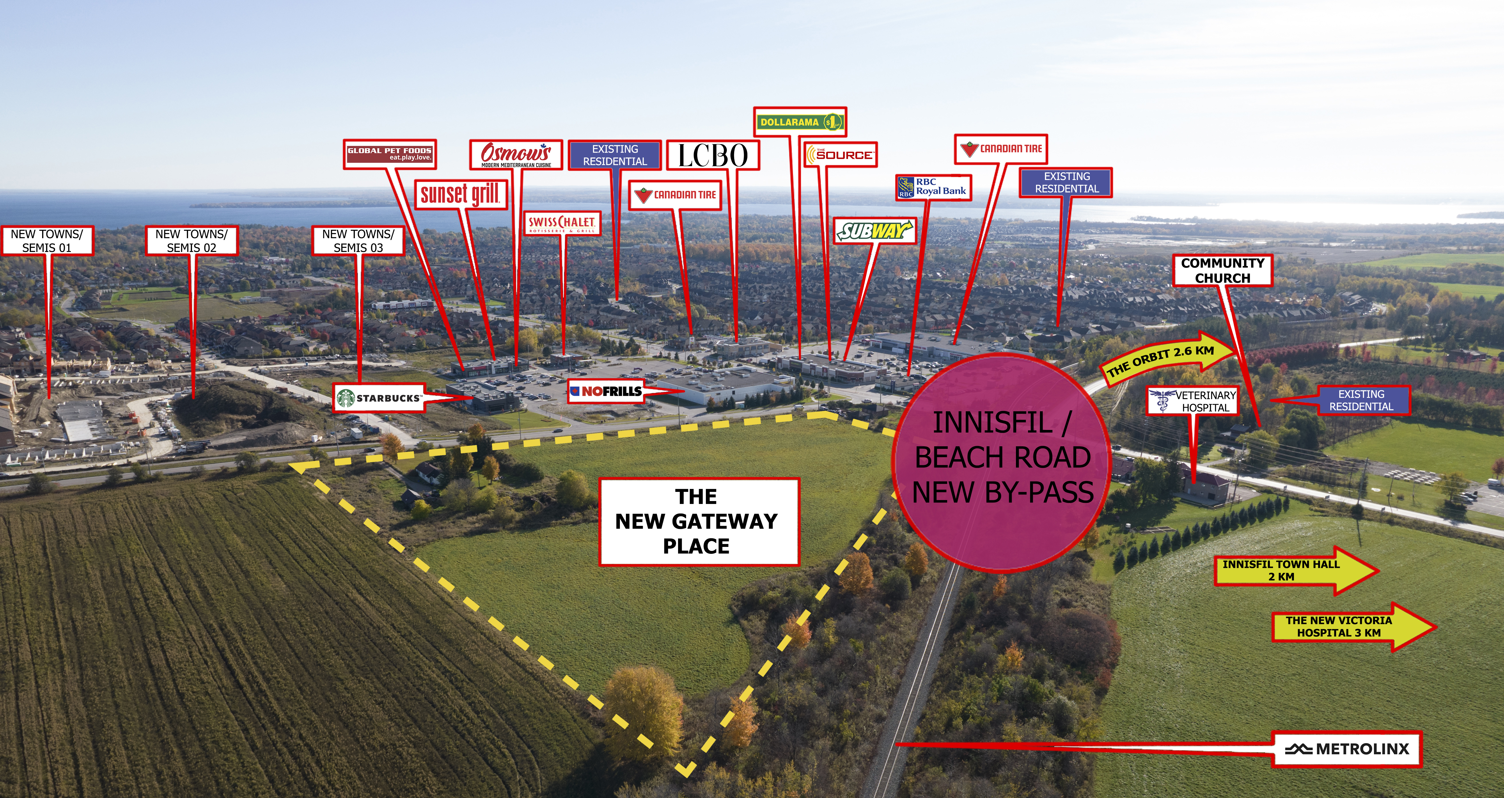 ii. The Subject Lands are surrounded by existing urban land uses including a vast amount of existing retail uses, pedestrian networks, and Transit Infrastructure (e.g., Metrolinx GO) including the planned Innisfil Beach Road By-pass, which will support future growth. Including the Subject Lands within the Alcona Settlement Area will help support the existing land uses and infrastructure investments, made by the province including the proposed Protected Major Transit Station Area.