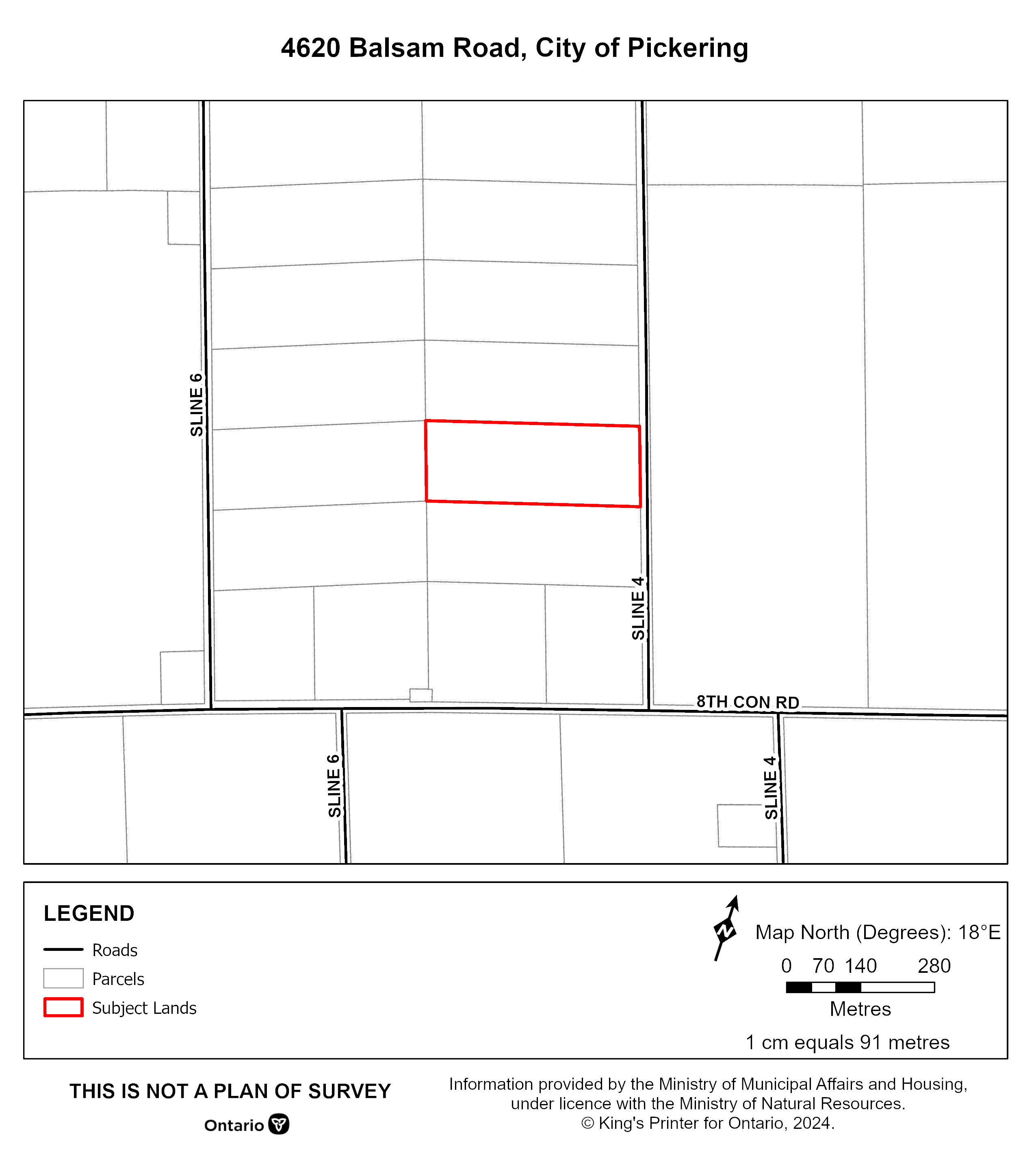 Veuillez noter que le ministère des Affaires municipales et du Logement a reçu une demande déposée à l’initiative du secteur privé visant à modifier l’arrêté ministériel de zonage, déposé comme Règlement de l’Ontario 102/72, pour les terres connues à l’échelle municipale sous le nom de 4620, chemin Balsam, dans la ville de Pickering, dans la région de Durham (les « terres concernées »). Les terres concernées sont légalement décrites comme faisant partie du lot 5, concession 8.